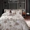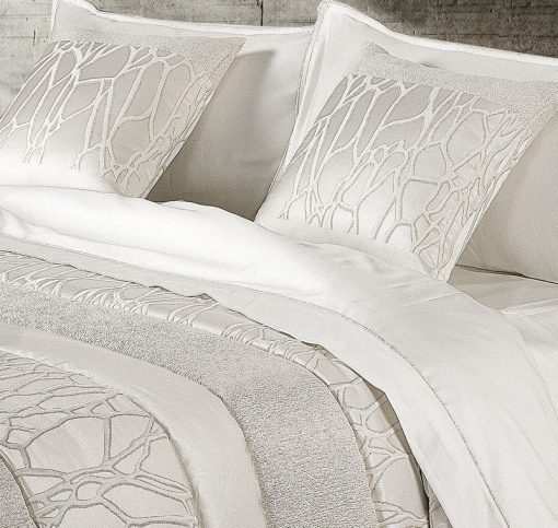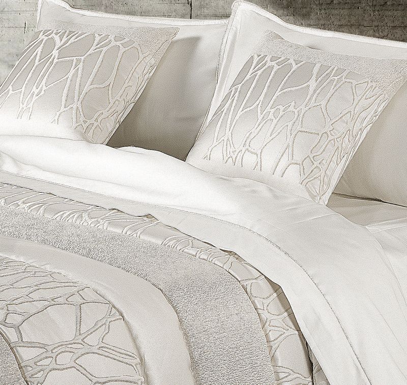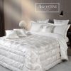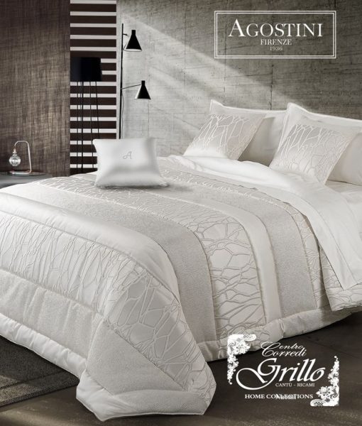 La nuova trapunta di Agostini Firenze è strutturata da un patchwork di resistente raso Toscano tramato al telaio con filo lurex oro su base panna.