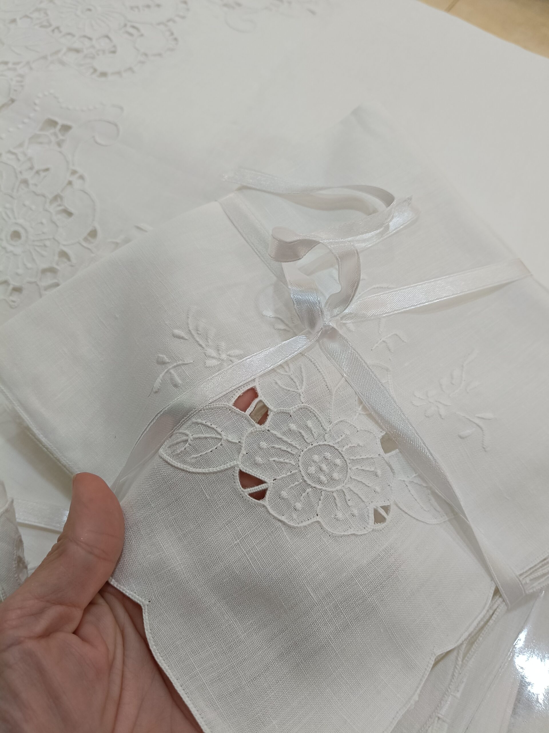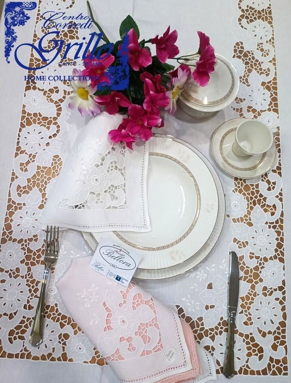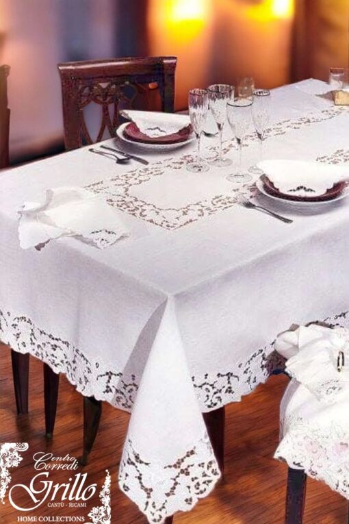 Aurora Boreale Servizio tavola ricamo a mano intaglio Bellora misura maxi 3 metri