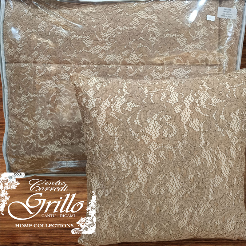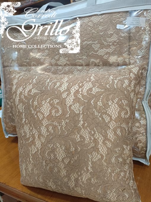 Cuscino fronte pizzo, retro raso unito, sfoderabile con imbottitura inclusa