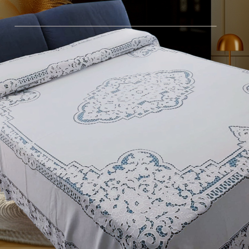 La Corte d’Intaglio è la nostra coperta: nata dall’incontro tra tradizione e innovazione, realizzata con la tecnica dell’intaglio, eseguita con precisione a macchina e impreziosita da filo in seta, per un effetto luminoso e raffinato.