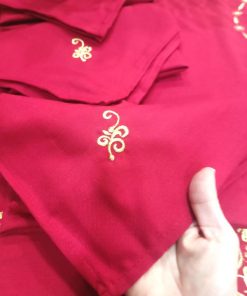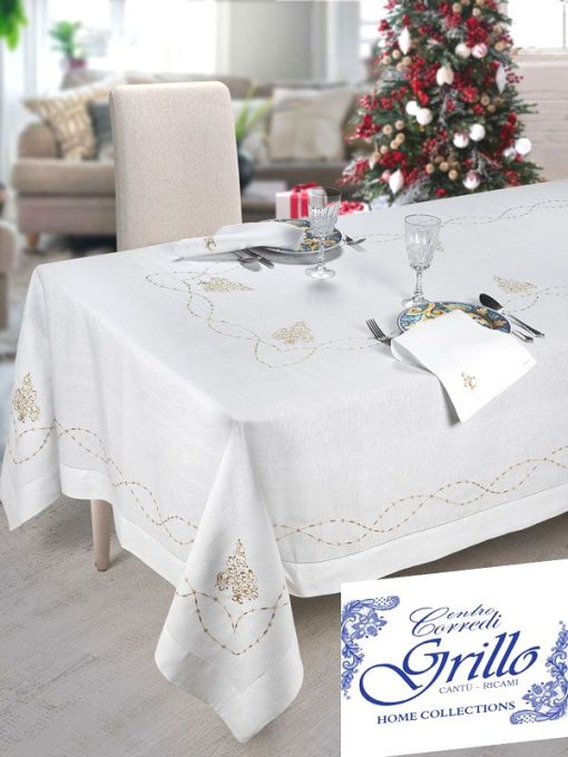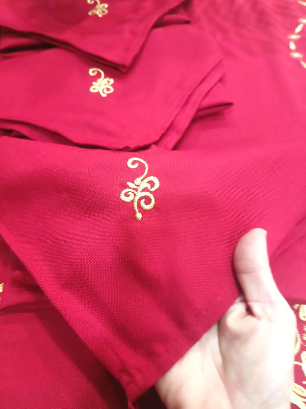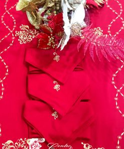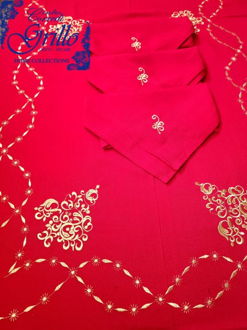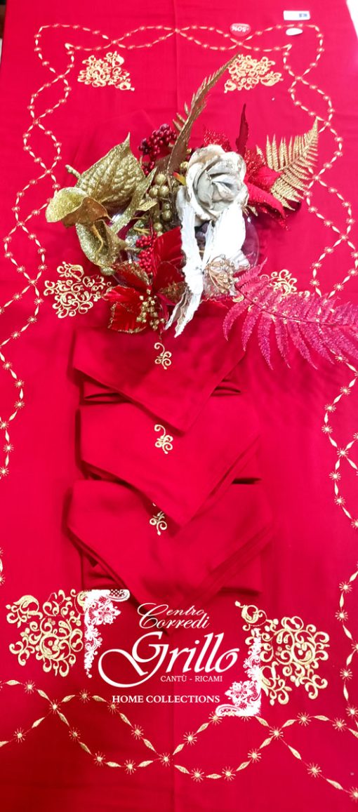 Costellazione Natalizia servizio tavola 12 posti rosso ricamo punto catenella
