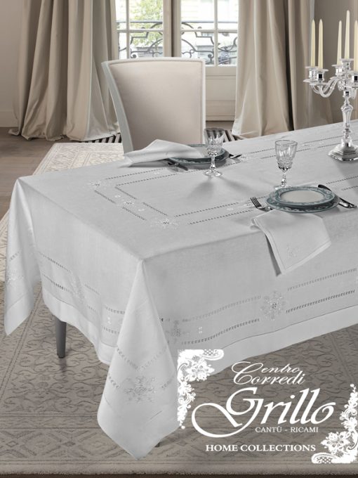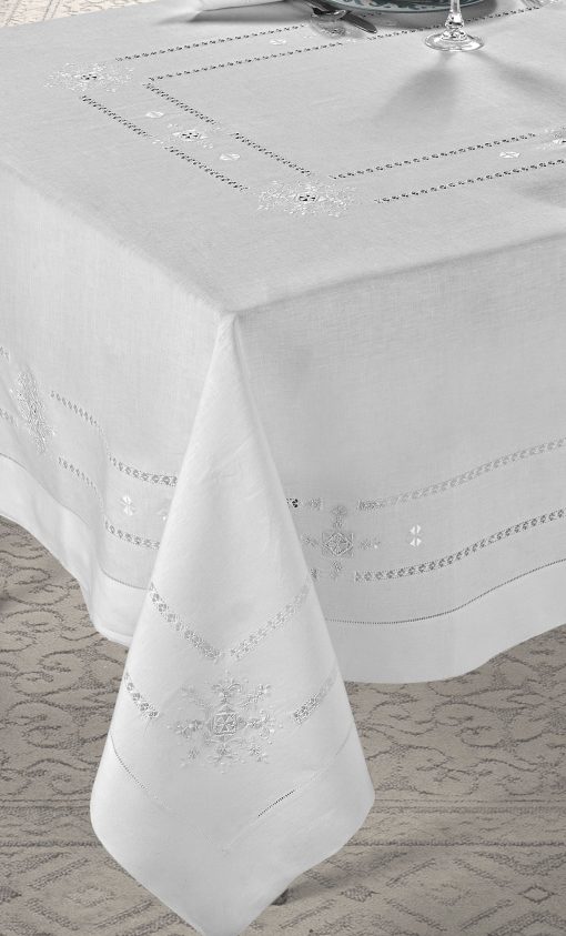 Daiana Servizio tavola Ricamo a mano Puro lino Bellora bianco