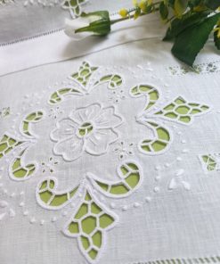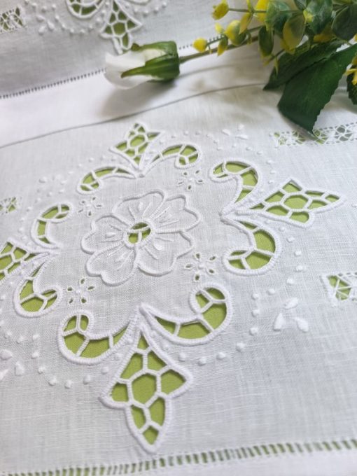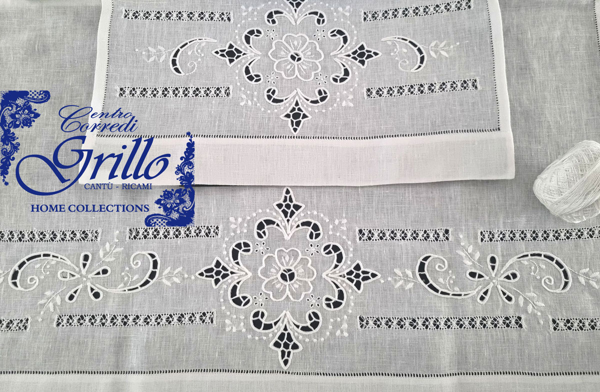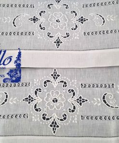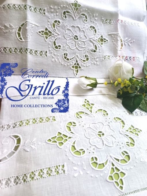 Rombi D’intaglio Coppia asciugamani ricamo a mano puro lino Bellora bianco