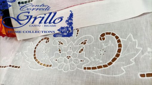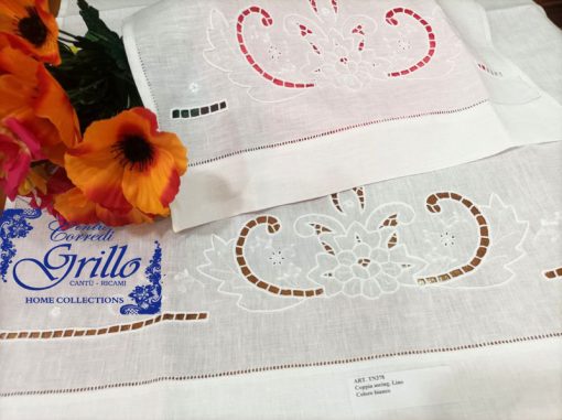 Ninfea Coppia sciugamano intaglio puro lino Bellora ricamo a mano bianco