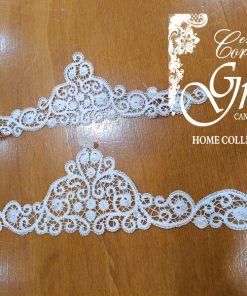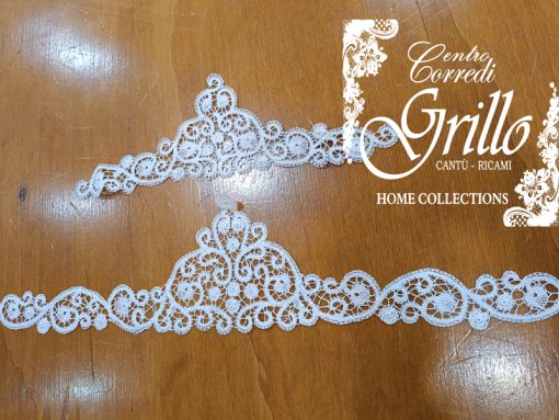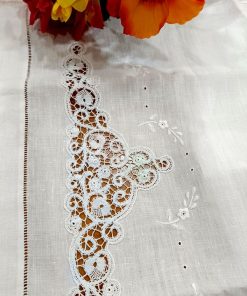 Asciugamano viso con balza pizzo cantù rosalin: e roselline a rilievo circondate da pizzo tombolo.