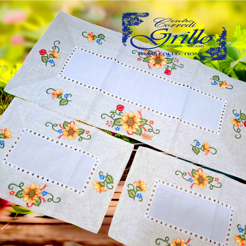 Girasoli e papaveri tris centri o centrotavola misto lino