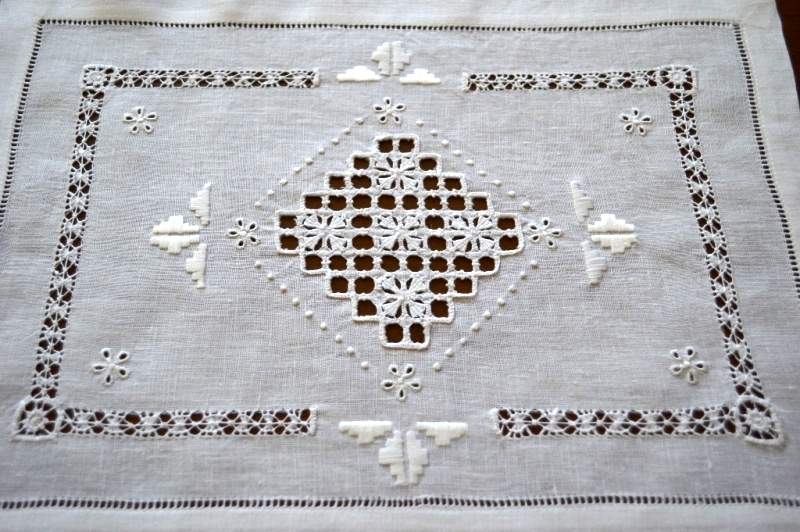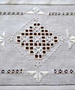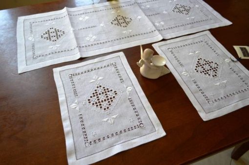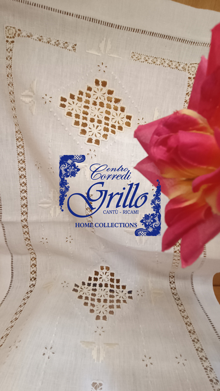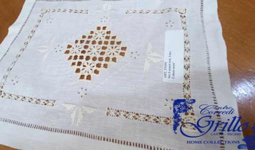 Tropea Tris centri stella a ago ricamo a mano lino Bellora ecrù